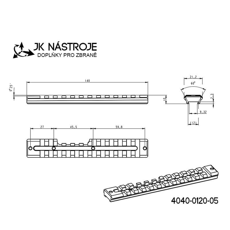 Picatinny-skinne (kikkertbase) for montering av montasjeringer med Picatinny-grensesnitt.