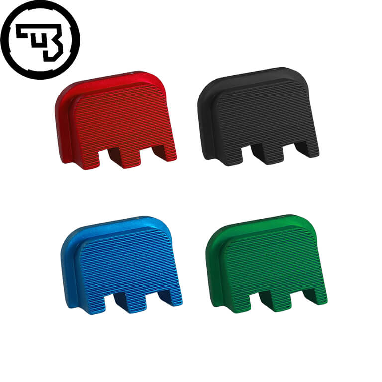 Glideplugg laget av aluminium med hard eloksert overflate. Tilgjengelig i forskjellige farger for å tilpasse utseendet på pistolen din.
