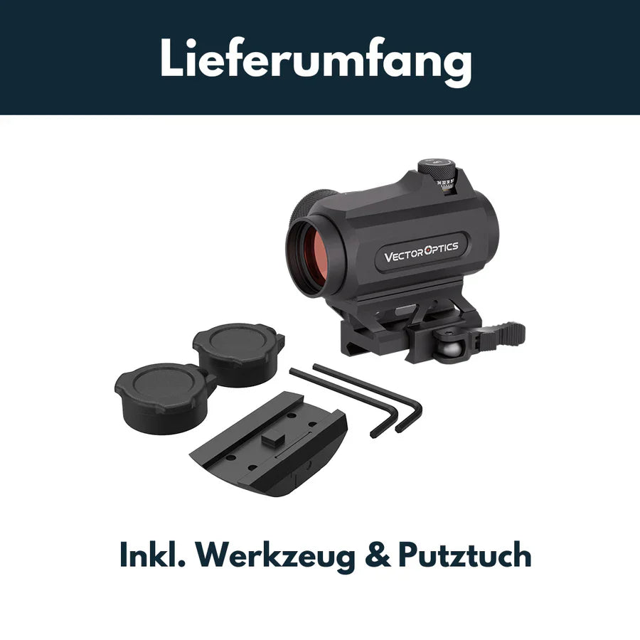 Dette rødpunktsiktet inkluderer en bevegelsessensor for å spare batterilevetid (automatisk avstenging etter 90 sekunder uten bevegelse; når det beveges, slås det på igjen i 5 minutter).