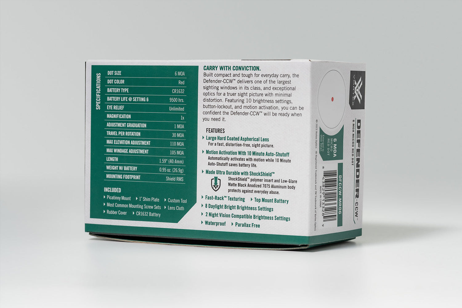 Designet med moderne diskret bæring i tankene, tilbyr dette ultraslanke refleksoptikket rask måloppdagelse i kritiske situasjoner—uten å kompromittere skjulbarhet. Dets kompakte footprint og lette design gjør det ideelt for bruk på slimline-pistoler og mikrokompakte plattformer, samtidig som det leverer robust ytelse du kan stole på.